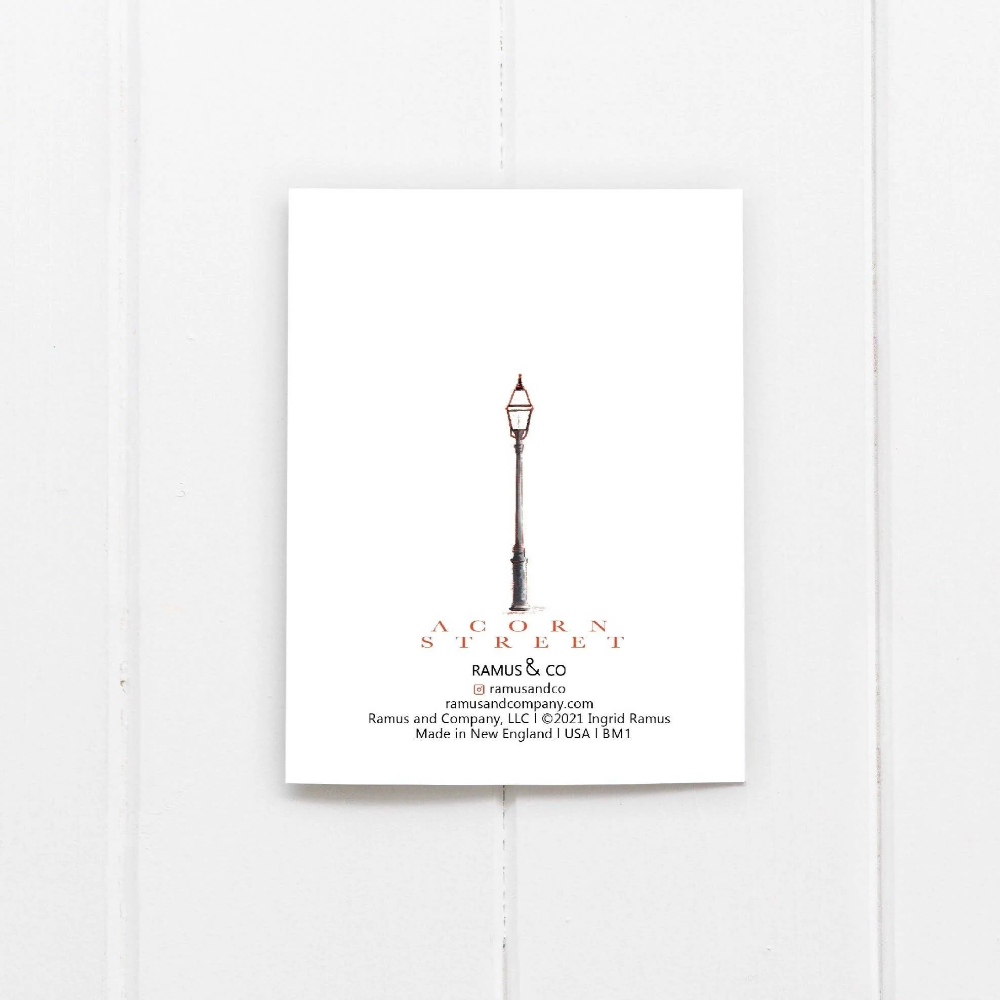 All our cards are printed on SFI and FSC certified paper. Designed and printed in New England, USA. Beautiful bright white cover paper, blank inside, includes an envelope with peel & stick.