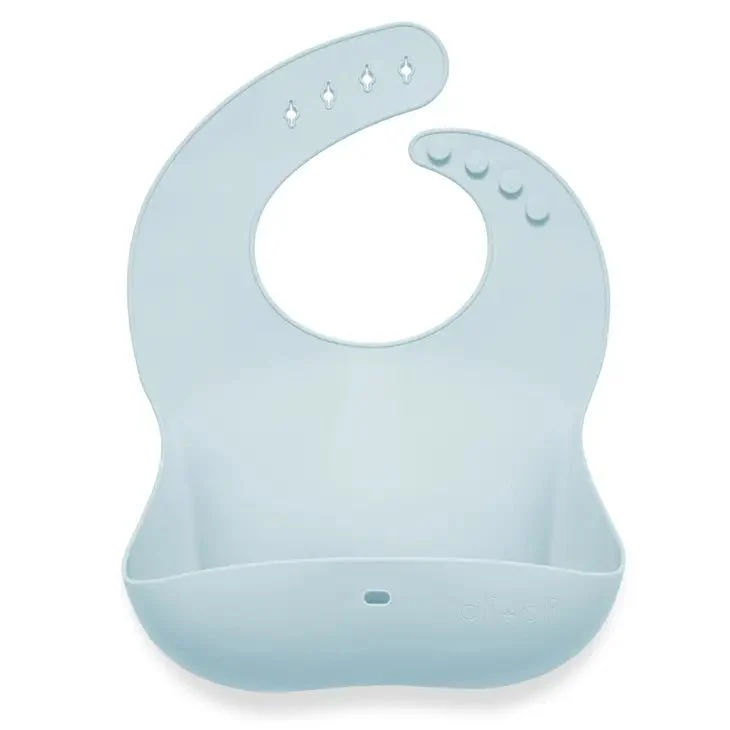 Soft Food Grade silicone that's gentle on your baby's neck and won't irritate Adjustable reinforced straps and button holes make them ideal for infants to toddlers of all sizes Specially designed bucket contour catches almost everything dropped Waterproof and easily wiped clean or top-shelf dishwasher safe if needed Rolls up and stays closed with the new button to fit into diaper bags and purses CPSIA Tested and Certified